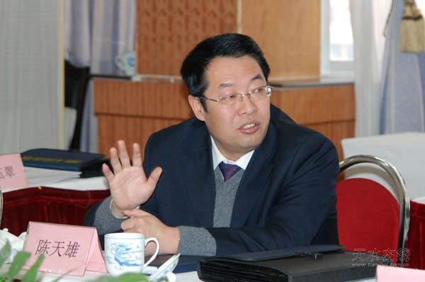 陈天雄说,过去一年,秦安县委、县政府团结带领全县人民,坚持以科学发展观为指导,解放思想,克服困难,锐意进取,真抓实干,各项工作都取得了较大的进展和可喜的成绩,呈现出了经济发展、社会进步、党建加强、民生改善的良好局面。但是,面对经济发展方式的科学转变、经济结构的优化调整和新形势、新任务、新要求,要继续保持这一良好势头,再创新的更大的成绩,就必须以党的十七大精神为指导,按照省、市的总体要求和部署,进一步深化对县情的认识,准确把握全县改革发展的总体特点和阶段性特征,继续坚持以农业为基础,以商贸为依托,以加工业为支撑,紧紧围绕“以商兴市、以市建城、以城带乡、工贸联动、城乡一体、协调发展”方针,充分发挥特色产业优势、商贸流通优势、传统文化优势、旅游资源优势和人力资源优势,全面实施“项目拉动、商贸带动、产业推动、城乡联动、三产互动”战略,大力加强基础设施建设、产业基地建设、品牌建设、专业市场建设、小城镇建设和新农村建设,不断开创加快发展、科学发展、和谐发展的新局面。
