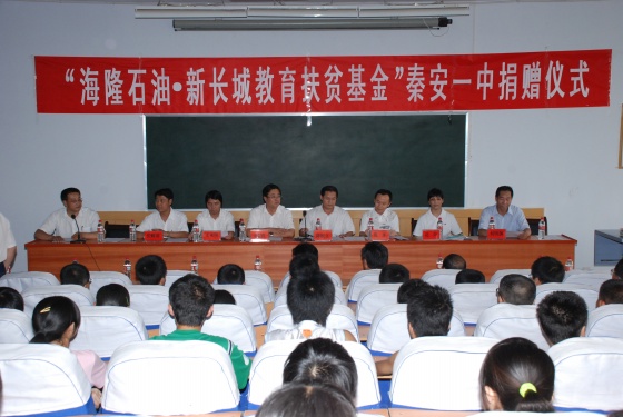 该项目是由海隆石油工业集团有限公司出资30万元,在中国扶贫基金会新长城项目部设立的“海隆石油·新长城教育扶贫基金”,每年定向资助秦安一中品学兼优、家境贫寒的20名在校生和10名高考优秀生。该基金连续资助5年,将有150名秦安贫困学子受到就学援助。