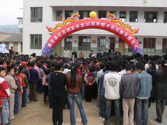 10月10日,秦安县西川镇中心小学校园内,人头攒动,热闹异常。全县纪念改革开放三十周年图片巡回展在这里举行首场展出。西川镇政府全体干部职工、镇属单位部分职工代表、西川中学、西川镇中心小学师生代表共400多人参加了开展仪式。