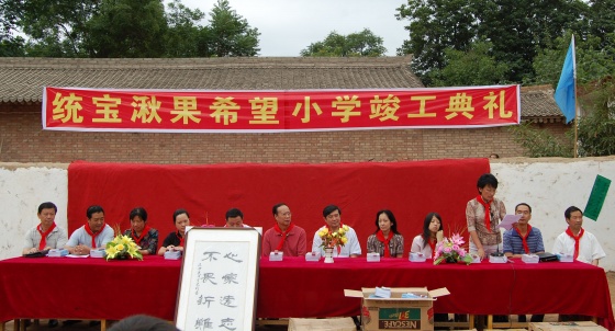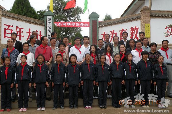 7月8日,秦安县莲花镇湫果希望小学举行竣工仪式, 上海统宝船务有限公司法人代表解丽君女士,公司高级顾问陈涛,董事长助理张平,天水市人民政府副市长赵卫东,秦安县委副书记程江芬,团市委书记马越垠、团市委副书记牛新虎参加竣工仪式。