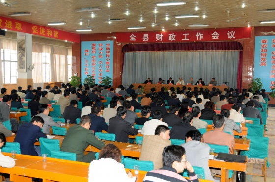 为了认真贯彻落实全市财政工作座谈会议和财政收入分析会议精神,全面总结今年我县前八个月财政工作,科学分析当前的财政经济形势,安排部署后几个月财政重点工作,动员全县上下进一步统一思想,认清形势,坚定信心,切实增强搞好财政工作的紧迫感和责任感,强化工作措施,狠抓增收节支,确保全面完成今年财政工作各项目标任务,2009年9月11日,秦安县召开了全县财政工作会议。