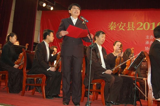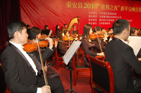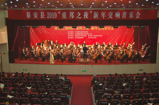 12月29日,由秦安县委宣传部主办,甘肃重邦置业有限责任公司承办,县文化旅游局、县广播电影电视局协办,兰州歌舞剧院、兰州交响乐团联合演出的秦安2010“重邦之夜”新年交响音乐会在行政中心礼堂举行。