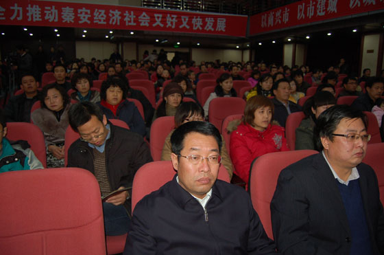 和谐颂盛世,欢歌庆丰年。在这严冬季节,我们已听到春天满怀希望的交响,听到团结奋进的号角。2010年是全面实施《关中——天水经济区发展规划》的起步年,也是完成“十一五”规划目标任务的最后一年。新的历程承载新的梦想,新的一年开启新的希望,面对新形势、新任务,我们将继续坚持“以商兴市、以市建城、以城带乡、工贸联动、城乡一体、协调发展”方针,积极实施“六大行动”工程和“四轮驱动”战略,强化项目支撑,调整经济结构,发展特色产业,转变增长方式,积极推进基础设施、产业基地、优势品牌、专业市场、小城镇和社会主义新农村六大建设,着力改善民生,统筹发展各项社会事业,推动全县经济社会加快发展、科学发展、和谐发展,努力建设富裕、民主、文明、和谐的新秦安!