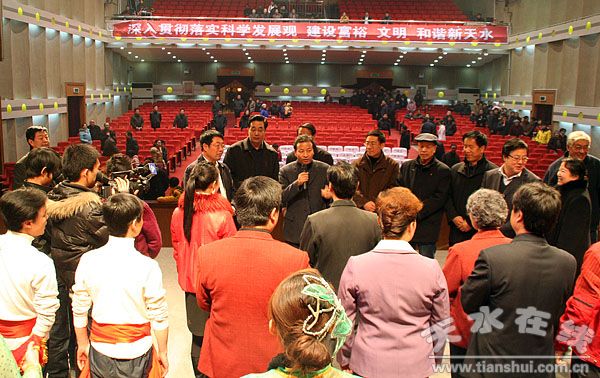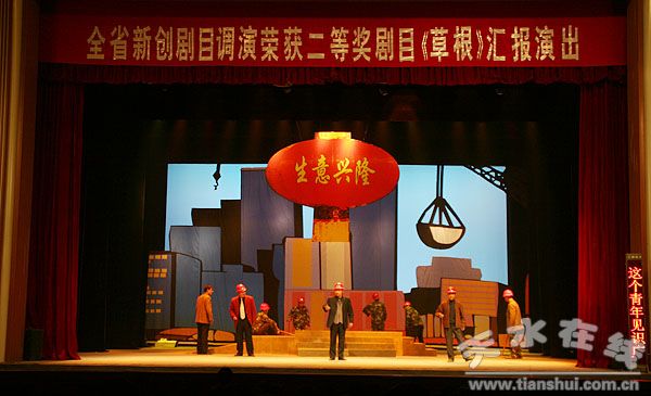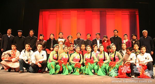 1月6 日晚,秦安县全省新创剧目调演荣获二等奖剧目《草根》在市上汇报演出。市委常委、副市长郭奇若,市人大副主任韩一兵,副市长萧菡,市政协副主席何道华,秦安县委书记陈天雄,县人大主任贾万祥,县长王东红,县政协主席高霆钓等四大组织领导,秦安籍在天水工作人士观看演出。