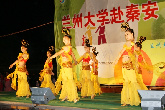 此场文艺晚会由共青团兰州大学委员会主办,中共秦安县委、秦安县人民政府、天水市教育局、共青团天水市委承办,县文化馆、民生中学等单位也参加了演出,共演出了包括独唱、合唱、舞蹈、相声、器乐合奏等多种形式的16个节目。独唱《长鼓鼓起来》、《儿行千里》、《七月的草原》情深意浓,舞蹈《金光千佛》、《竹枝词》优美动人,小提琴二重奏《卡侬》、二胡齐奏《骏马奔腾》悦耳动听,表演唱《爱的主打歌》、《花儿美》激情奔放,相声《口吐莲花》、秦安小曲《和谐秦安》声情并茂,合唱《爱我中华》气势恢弘……一个多小时的精彩演出,博得了现场近万名干部群众的热烈掌声 。