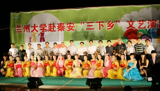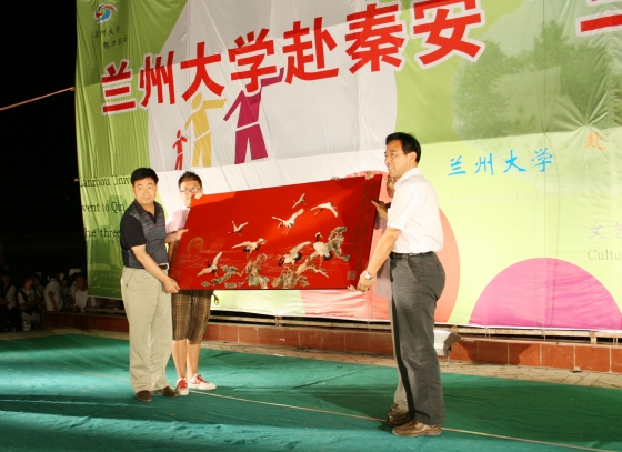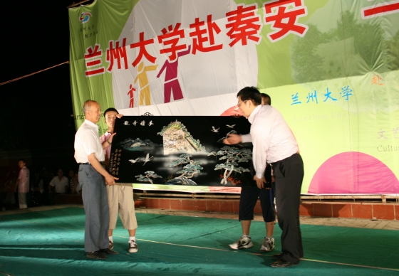在演出过程中,秦安县人大常委会主任贾万祥,县委常委、副县长张璞银代表秦安县委、县政府向兰州大学赠牌。