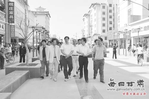 (秦安县委书记徐健,县委副书记、县长王东红深入北坛步行一条街检查指导工作。焦继周摄)