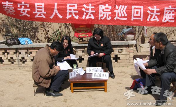 随风潜入夜,润物细无声。在新的历史时期,“以文化软实力引领法院工作可持续发展”已成为各级人民法院的共识。而秦安法院的文化建设却如同三月的细雨,随风悄悄的潜来。他们通过法院文化的创建,队伍建设、审判工作、基础建设、法院改革等各项工作取得了良好的成绩,干警的司法理念、精神风貌、职业素养发生了可喜的变化。近年来,审判工作和其他各项工作取得了长足的进步,为平安和谐社会建设做出了积极努力。审判工作呈现出受理案件数、结案率、息诉服判率上升,上诉率、发回改判率下降的“三升两降”的良好势头。受理案件数由2007年的685件上升到2009年的1131件,结案率由96.99%上升到99.02%,息诉服判率由92.5% 上升到96 %,上诉率由7.5 %下降到4%,发回改判率由5.5%下降到4.2%。三年来,未发生一件赴省进京涉诉上访案件。2007年被中共天水市委授予“平安创建活动”先进集体;2008年被甘肃省高级人民法院评为“全省优秀法院”、“全省法院党风廉政建设先进集体”;2009年被天水市中级人民法院评为“全市优秀法院”;连续多年被秦安县委、县政府授予“先进集体”、“先进基层党组织”荣誉称号。2007年以来,先后有8个庭室和30多人次受到最高院和省、市法院表彰奖励,2人被授予省、市级“先进工作者”荣誉称号。