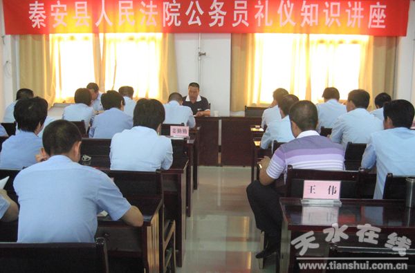 法院文化是法院群体的灵魂。法院文化决定着法院群体的价值取向,支配着法院干警的行为选择,制约着法官的思维和判断。为切实解决“门难进、脸难看、话难听、事难办”及“冷、横、硬、推”的现象,争做文明法官,展示人民法院、人民法官的良好形象,他们制定了《秦安法院规范用语标准》,内容涉及接打电话、接待当事人和来访群众、外出办案、法官日常工作用语等文明用语。同时,在庭审中,充分教育干警规范庭审用语,提高庭审驾驭能力。由法院政治科负责对执行情况进行跟踪监督,凡是有群众和诉讼当事人反映干警态度不好和用语不文明的要进行通报批评。通过邀请人大代表、政协委员旁听庭审活动进行外部监督,促使干警做到着装规范,服装整洁、穿戴整齐,做到用语规范,语言文明。通过邀请县委党校教师讲解公务员礼仪与司法礼仪知识,提高干警文明司法的知识和水平。