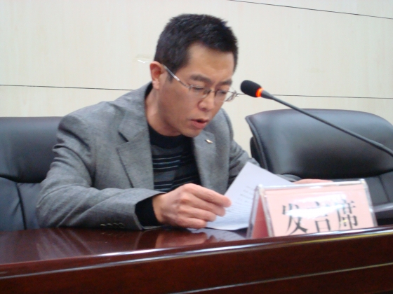 县民政局副局长吴权纲宣读《秦安县民政局关于开展农村低保分类施保和新增扩面工作的通知》