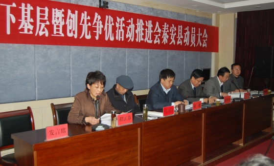 会议由县委副书记、县长王东红主持。县委书记徐健作了动员讲话,市委派驻秦安县下基层工作组组长赵海余作了讲话,县委副书记程江芬宣读了《在全市创先争优活动中开展万名党员干部“三进三促三提升”活动秦安县实施方案》;县委常委、组织部长郭海军宣读了各工作队队长、副队长,下基层工作队员驻村、社区、非公企业编队名单和工作纪律;3名下基层工作队员作了表态发言。