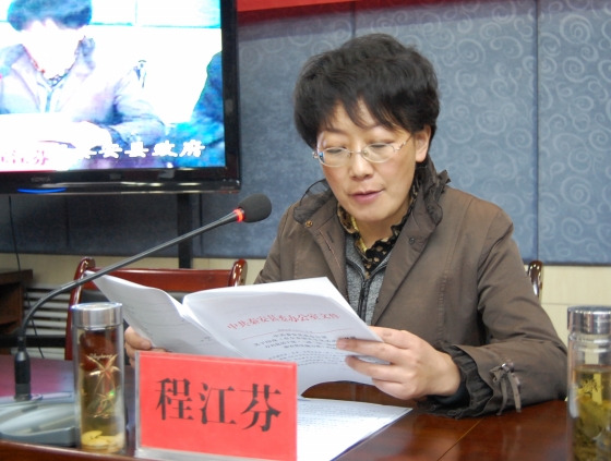 县委副书记程江芬宣读《在全市创先争优活动中开展万名党员干部“三进三促三提升”活动秦安县实施方案》