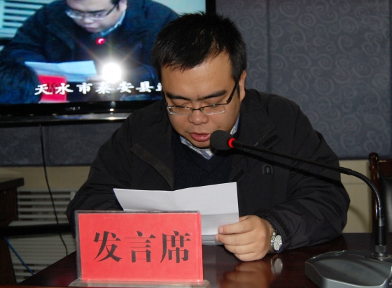 12月3日,秦安县召开全市万名党员干部下基层暨创先争优活动推进会动员大会,贯彻全市党员干部下基层暨创先争优活动推进会精神,对秦安县下基层活动进行全面动员和安排部署。动员大会采取视频会议的方式召开,在主会场参加会议的有县四大组织在家领导,群团组织主要负责人,市、县派驻非公企业工作队员,有关非公企业党组织主要负责人共计60多人。各乡镇工作队副队长,市、县派驻各村、社区工作队员,各乡镇领导干部,各村、社区党支部书记在各乡镇分会场参加会议。