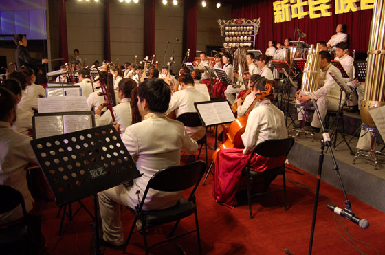 音乐会以民族管弦乐《春节序曲》开场,气势磅礴、欢腾热烈的曲调一下子让观众感受到浓烈的节日气氛。随后,乐队以精湛的技法演绎了江南丝竹《欢乐歌》、唢呐独奏《黄土情》、民族管弦乐《陇右春潮》、交响组曲《乔家大院》等十多首经典名曲。动静结合的旋律时而热情奔放,时而温柔舒缓,既有我国古朴典雅的传世精品,又有现代音乐的不朽经典,令每一位观众陶醉其中。最后,音乐会在交响序曲《闹春》喜庆的旋律中完美谢幕。
