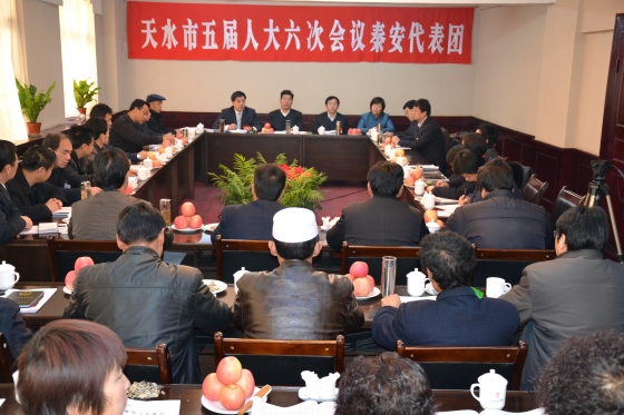 1月21日上午, 天水市第五届人民代表大会第六次会议秦安代表团审议政府工作报告。省政协副主席、市委书记、市人大常委会主任张景辉参加秦安团分团审议政府工作报告。