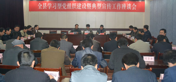 座谈会上,县委副书记程江芬,县委常委、组织部长郭海军分别作了讲话,县委常委、宣传部长李尚平主持会议并作了讲话,县委宣传部副部长常文茂对学习型党组织建设和典型宣传下一阶段的工作作了具体说明,教体局、检察院、中小企业局、人行、魏店乡等乡镇和部门代表就学习型党组织建设的主要做法和工作部署作了发言,农业局、广电局、中医院、兴国镇等乡镇和部门代表就今年典型宣传工作安排和进展情况作了简要汇报。