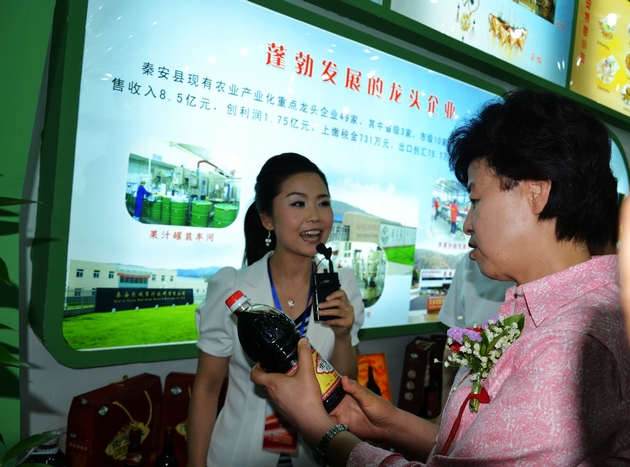 特色突出的农产品吸引了省、市、县(区)各级领导及宾客前来观看,当听到“街泉庄香醋”有“降血压、养颜、美容”的介绍时,省委常委、副省长咸辉拿起一瓶香醋仔细端详,连连称赞。县委书记王东红观展后,对“街泉庄香醋”寄予厚望,对“花椒芽菜、花椒芽酱”要求要尽快上市,打开销路。来宾和游客在品尝了“街泉庄苦荞醋”后,个个竖起大拇指称赞“又酸又香”。而“秦安扁桃”奇特的模样更是吸引了众人的眼球,纷纷驻足观赏,称其为“人间蟠桃”……