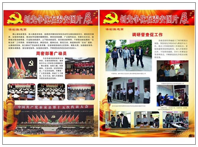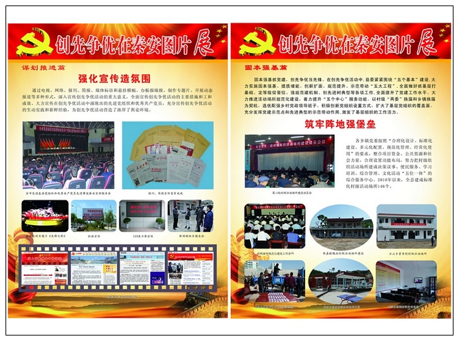 据了解,“创先争优在秦安”大型图片展共分谋划推进篇、科学发展篇、文明和谐篇、服务民生篇、固本强基篇、乡镇党委篇和县直党委篇七大部分、106个版块,展出图片860多幅。图片展在秦安县城展出之后,将在各乡镇巡回展出,以扩大创先争优活动的宣传面和影响力,激发全县基层党组织和广大党员创先争优的热情与活力。