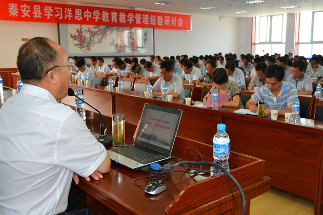 为推动全县“学习洋思经验,打造高效课堂”活动深入开展,本着“聚集洋思中学经验智慧,引领我县教育健康发展”的宗旨,以感悟教育名家智慧,提高教学和管理水平为目的,7月16日,秦安县特邀江苏省泰州市洋思中学校长秦培元及名师一行10人,来我县开展为期2天的高校课堂报告会暨课堂教学示范活动。