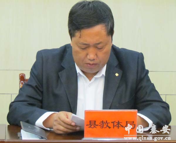 (县教体局局长任玉璞宣读《秦安县中小学校车安全工程实施方案》)