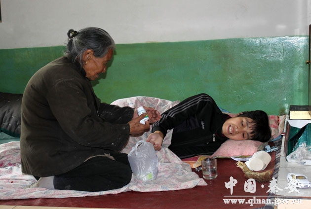 2012年6月,已于病魔抗争了六年,她的病情越来越重,已无力下炕走路,婆婆反倒心疼起了儿媳,虽然有些疯疯癫癫,也许是发自内心的一种爱,有时还为儿媳盖被褥,提醒她按时吃药。看着满头白发的婆婆和还未成年的儿子,还有一大堆的事等着她去做,在亲人面前故作高兴的姚秀英心理像刀割一样,比吃了黄连还苦,在没人的时候,不听使唤的眼泪会不由得夺眶而出,为她洗刷内心的疼痛和苦衷。
