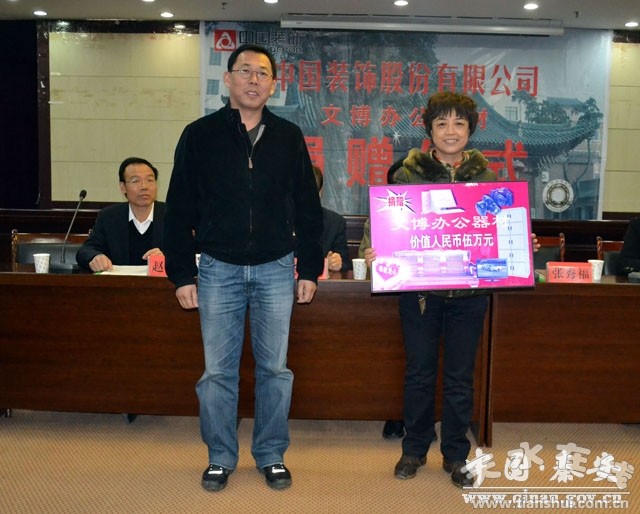 11月3日,中国装饰股份有限公司文博办公器材捐赠仪式在秦安县举行。原秦安县副县长、国家文物局党办主任尹建明,中国装饰股份有限公司总经理张秀福,甘肃省文物局办公室主任柴生璋,县委常委、宣传部长李爱仙出席捐赠仪式,参加捐赠仪式的还有县文物部门负责人及县文博系统全体员工。县委常委、宣传部长李爱仙主持捐赠仪式并作了讲话。