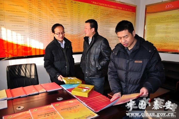 1月9日,市委党校纪委书记、市双联办督查组副组长陈晓明,市委创先争优办干部王小平,市委组织部副科级组织员甄江林等市委考核组成员,在秦安县委组织部、县双联办和相关单位负责人陪同下,先后深入郭嘉镇槐庙村、甘肃福雨塑业有限责任公司、兴国镇腰崖村,就基层党建、“双联”工作进行实地查看。