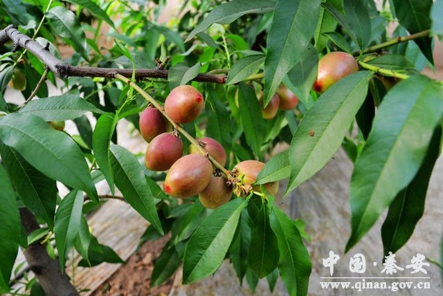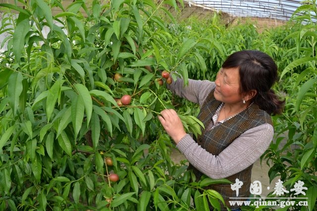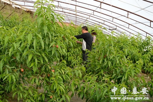 三月的秦安,春和景明,桃花吐蕊。但在刘坪乡杜寨村胡小琴家日光温室大棚中看到,这里已是桃香扑鼻、硕果累累,一片喜人景象,这是秦安县即将上市的反季节油桃。