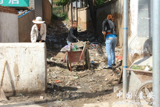 6月9日一早,由乡领导带队,组织全乡400多名干部群众,350多名学生,人手一份清洁工具,以“三堆”(粪土堆、柴草堆、垃圾堆)为主要清理对象,对公路两侧、庭院外巷道、学校和商铺等周围环境卫生进行全面大清除。特别对杂草丛生、恶臭难闻的卫生管理盲区和未修建垃圾点的区域进行了彻底清扫。在这次活动中,共出动干部群众和学生750多人,清理路段长11公里,清理卫生死角15处,清运垃圾10多吨,脏乱差等问题明显改善。