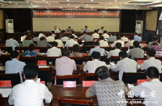 6月24日,秦安县委常委、纪委书记杨仁义主持召开秦安县2013年效能风暴行动民主评议机关作风和政风行风工作动员大会。县效能风暴行动协调推进领导小组组长、副组长,评议代表,各被评部门和单位、县委各部门、县人大办公室、县政协办公室、县法院、县检察院及人民团体主要负责人以及评议办公室成员等共80余人参加了会议。县委常委、副县长任佩光出席会议并作了讲话。