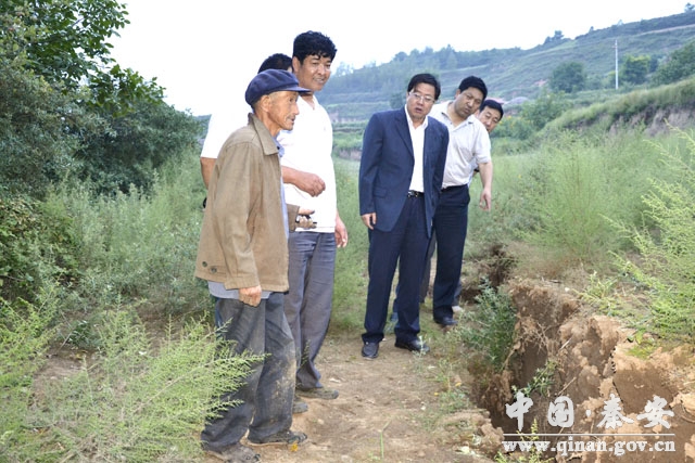 8月10日,秦安县委书记王东红,县委副书记、县长程江芬带领县委办、政府办、国土资源局、民政局等部门负责人赶赴中山乡中山村刘箕组地质隐患点查看险情并指导除险工作。