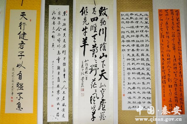 据了解,本次展览活动从今天开始至10月6日结束,共展出作品109件。作品中有浑然古朴的篆隶,有工整隽秀的楷书,有挥洒自如的行草,内容丰富、品味高雅,形式多样,异彩纷呈,既展示了秦安县书法艺术蒸蒸日上、蓬勃发展的良好局面,也表达了书法家们豪情满怀、意气风发的精神风貌,体现了他们对家乡的深情厚谊和无比热爱。