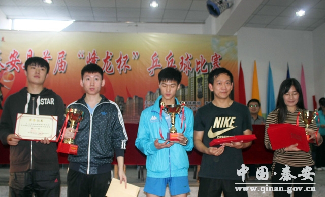 10月3日下午,秦安县首届“峰龙杯”乒乓球赛在秦安县兴国第一小学训练馆圆满结束。县委常委、宣传部长李爱仙,县政协副主席马振寰出席闭幕式,并为获胜队及个人颁奖。参加闭幕式的还有各参赛队、运动员和社会各界人士200多人。