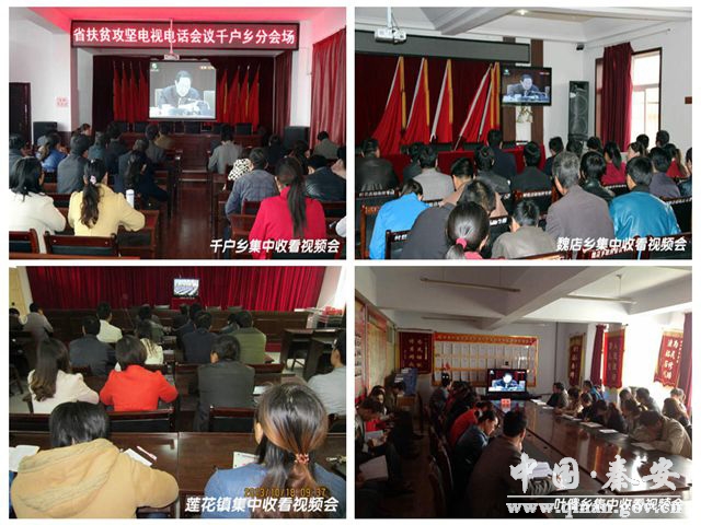 10月18日,全省扶贫攻坚推进视频会议召开。秦安县领导王东红、郭海军、程江芬、高霆钧、裴贵军、杨仁义、任佩光、丁晓来、李爱仙、裴子会以及县直部门、驻秦单位相关负责人在秦安分会场收看了视频会议,全县各乡镇在本单位进行收看。