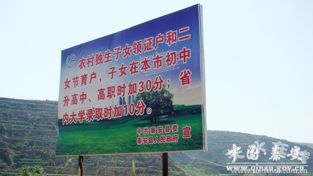 宣传教育形式多样、内容丰富。充分利用各种宣传阵地开展计划生育宣传教育、优质服务活动,县人口局在310国道、叶莲路及县城成纪大道制作了国策门、大型广告牌和灯箱喷绘;各乡镇在主要道路边制作了巨幅计划生育公益喷绘宣传画,布置了宣传长廊和文化大院,全县所有的村组都刷新书写了醒目的宣传标语;县直各部门和驻秦各单位为各自的帮扶乡镇建立了一个集村民自治、依法行政、政务公开、村服务室建设和宣传教育示范基地为一体的综合示范点。