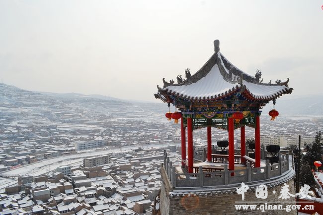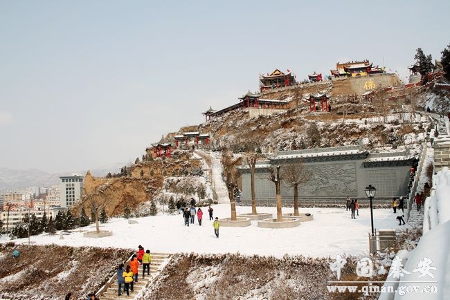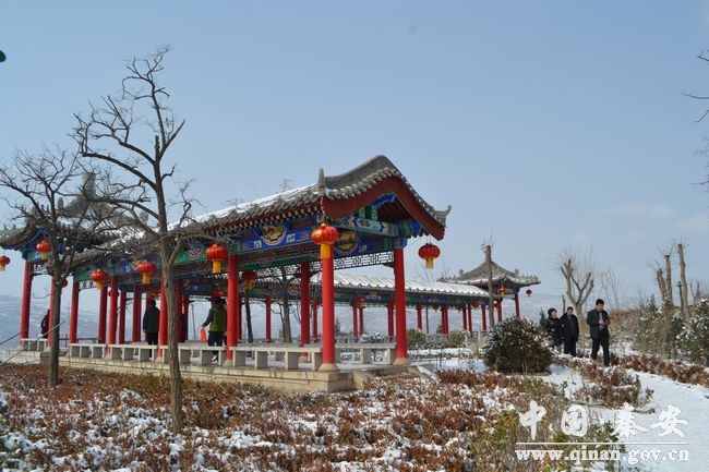 自2月6日起,由于受冷空气影响,秦安县迎来立春以来的首场明显降雪,纷纷扬扬的雪花将群山装点得分外美丽。凤山风景区内的庙宇、长廊、亭台、楼阁以及人工湖泊等特色建筑均披上一层厚厚的银装,给节日出行的游客增添了不少兴致。