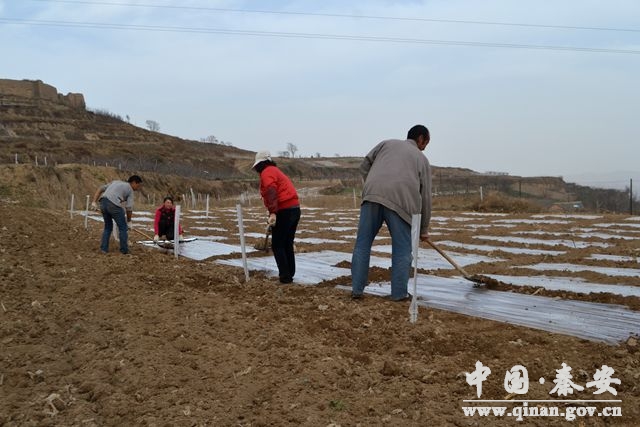 (千户乡天城堡流域干部群众一道顶凌覆膜)
