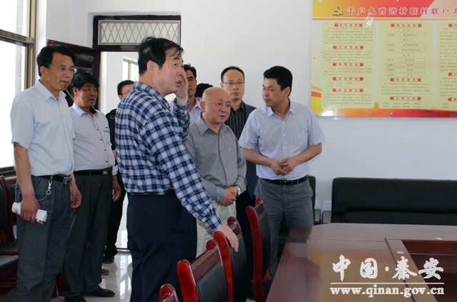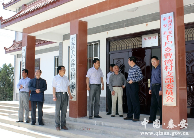 5月20日,省工商局副局长苏文辉、财政处长余新立一行深入“双联”点曹湾村调研2013年帮扶项目实施情况及2014年帮扶计划,副县长樊立农陪同调研。