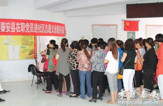 在建党93周年来临之际,为了进一步深化在职党员进社区开展志愿服务活动。6月19至20日,秦安县卫生局、县人民医院、县中医院、县妇幼保健院、兴国镇卫生院等多家医疗单位的在职党员纷纷走进兴国镇映南社区、北关社区、大城社区、南关社区,为社区居民开展免费义诊、上门送医、健康知识讲座等志愿服务活动。