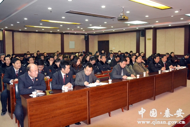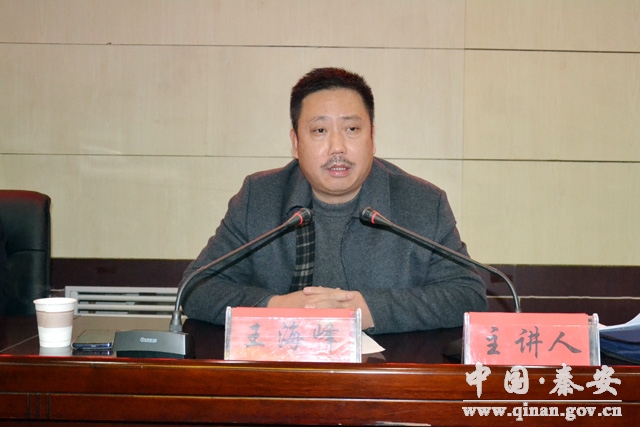 12月18日,全市政法系统党的十八届四中全会精神“百场巡回宣讲”秦安宣讲报告会举行,报告会特别邀请市依法治市办公室副主任王海峰主讲,县政府副县长扇忠瑜主持并对全县综治维稳成员单位学习宣传贯彻党的十八届四中全会精神提出了明确要求。