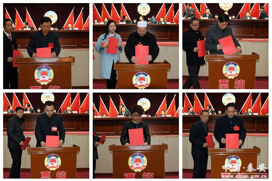 会议由大会日程执行主席、县政协副主席贠耀德主持。 会议通过了《中国人民政治协商会议秦安县第十二届委员会第四次会议关于接受高霆钧同志辞去政协秦安县第十二届委员会主席职务请求的决定》、政协秦安县第十二届委员会第四次会议选举办法(草案);以举手表决的方式通过了政协秦安县第十二届委员会第四次会议总监票人、监票人;宣布了总计票人、计票人名单。 会议以无记名投票的方式选举杨仁义同志为政协秦安县第十二届委员会主席。