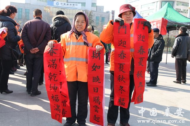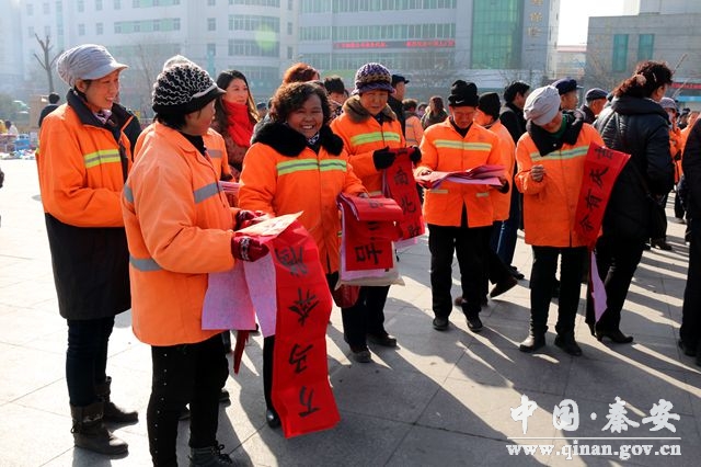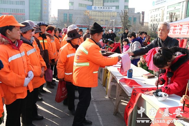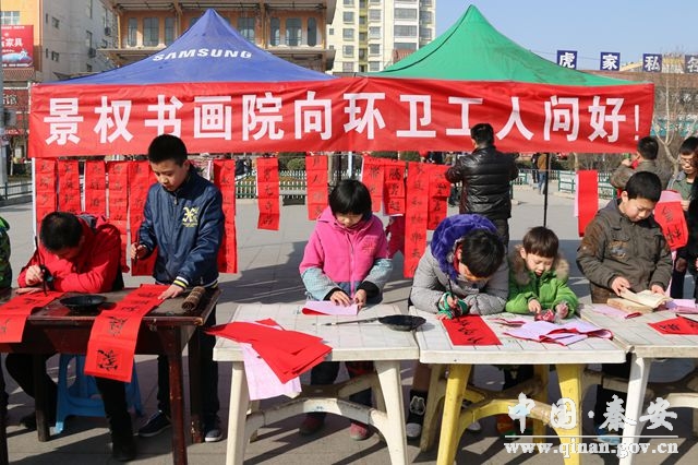 ·秦安景权书画院义务为环卫工写春联送祝福(图)