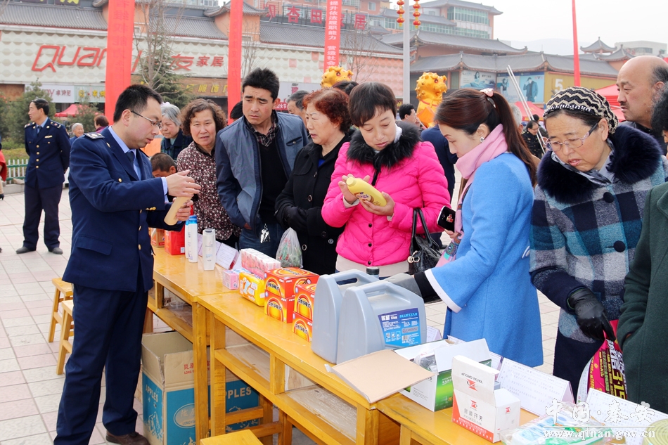 3月15日,由秦安县委宣传部、县文明办、县工商局、县消费者协会主办,县质监局、县商务局、县住建局、县食药监局、县烟草专卖局等有关部门、名优企业协办的以“携手共治 畅享消费”为主题的纪念“3.15国际消费者权益日”宣传活动在秦安县兴国广场隆重举行。