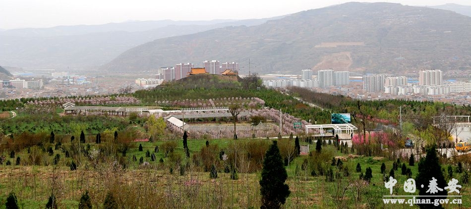 凤山生态文化公园位于秦安县城东部,是从大地湾附近的九龙山向西延伸的余脉,因其形如凤凰雄峙秦安县城,故名凤山,现为国家4A级旅游景区、省级文物保护单位。景区占地面积约1150亩,由生态水域景观、太平堡“青莲念佛堂”、泰山庙古建筑群、春场行宫及明清古街五部分组成。其中泰山庙始建于元代,现存殿宇34座,是甘肃省保存最完整的明清古建筑群之一,整体建筑分为九台,依山造势,布局规整,精巧别致,融佛、道、儒三家文化于一山,荟萃了众多历代名人楹联牌匾,体现了道家文化尊法自然、天人合一的思想。近年来,秦安县委、县政府高度重视,强化组织领导,落实责任,扩大对外宣传,提高景区影响力和知名度,同时,不断加快开发建设步伐,实施凤山文化生态公园建设工程,维修了泰山庙古建筑群,进一步完善了景区基础设施,有力提升了景区的文化内涵和档次。