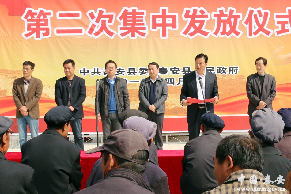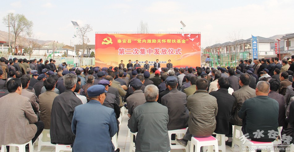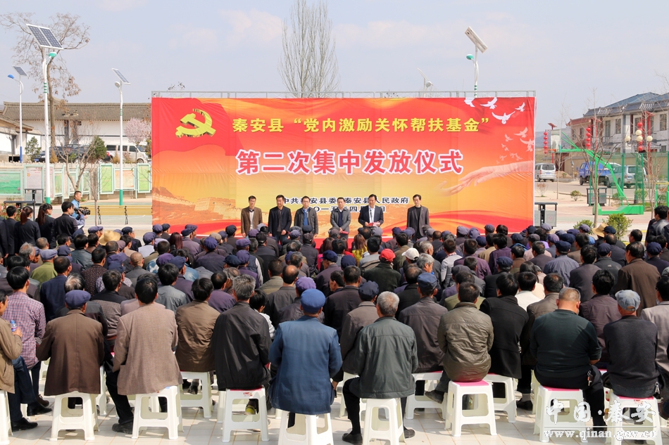 4月9日,秦安县举行第二批“党内激励关怀帮扶基金”发放仪式,发放范围为莲花、五营、陇城三个乡镇。这是继3月25日县委举行第一次“党内激励关怀帮扶基金”首批发放后的又一次集中发放活动。
