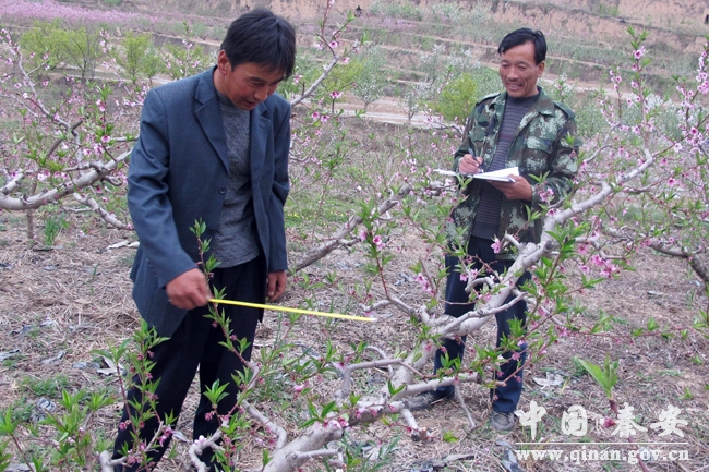 邓成来就这样以一名普通农民的身份,默默地通过自身的能力让一项项农业新技术在贫瘠的黄土地上“生根发芽”,让一颗颗红富士苹果像一个个待嫁的新娘,戴上了鲜艳的“红盖头”,每当成熟季节,漫山遍野,就像无数的“红灯笼”,照亮了农民的“钱途”,指引着农民人通向小康的阳光大道。在他的默默工作下,躺在书本中的科技知识活生生转化成了果农可以操作的赚钱手段,成为技术的学习者、传播者,是真正能够把知识转化为生产力的带头人,体现了当代农民的良好精神风貌。2006年至2009年期间,梨小食心虫肆虐,每年80%-90%的桃子遭到虫害,无法销售,给果农带来了灭顶之灾,在呼丽萍教授的指导下,在县果业局的大力支持下,他潜心试验、调查摸索出了一整套有效防治虫害的办法,在推广应用的几年里一举消灭了病虫害。2010年以来,在配合国家桃产业技术体系兰州综合试验站“十二五”计划的各项试验、示范项目,如黑膜覆盖、桃长枝修建、老果园改造、覆草、种草、袋挖肥等技术。为了弄清黑膜铺设的好坏,他认真观察,仔细研究,观察了地表到地下1.5米的果树根系情况,数清根须,对照比较,用实际数据打消了推广之初大家普遍怀疑的会造成果树根系上移,会造成果子早熟等等误解,取得的成效得到了林果专家的肯定,他种植的桃达到了国家绿色食品标准,套袋桃售价达到6元/斤。加入天水市果业协会,秦安县果农协会,邓成来更加忙了,因为他的技术推广都是建立在实践检验的基础上的,所以他不仅要抓好自己的果树种植,技术试验,还无偿帮助其他果农,通过电话指导、深入田间地头,风里来雨里去,十多年如一日,在他的努力下,使一个个乡村农民慢慢都变成了像他一样的果树种植能手,致富带头人,土专家,新技术的推广者,目前在他们的共同努力下引进并推广的农业新技术达到十多项,有高垄覆膜、桃长枝修建、覆草、种草、袋挖肥、测土配方施肥、老果园改造、性诱剂、糖醋液、迷向素、粘虫板等,这些技术的成功应用得到了国家桃产业技术体系各位专家的高度评价,认为可在浅山干旱山区大力推广。