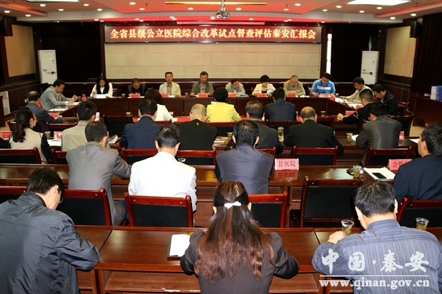 在汇报会上,督查评估组在听取了秦安县委副书记、县长程江芬对秦安县级公立医院综合改革试点工作的详细汇报后,对秦安县级公立医院改革试点工作给予了充分肯定,并就改革工作的现状、存在的困难和问题与相关部门负责人进行了深入交流。