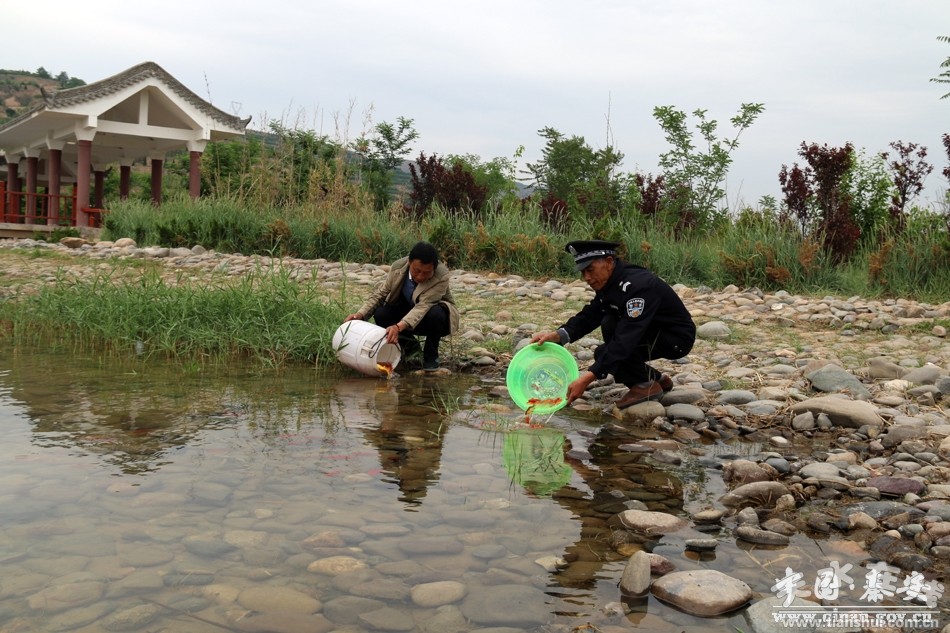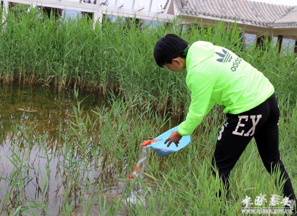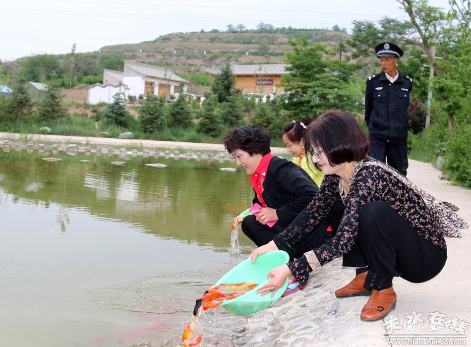 5月25日,秦安凤山景区举行4万尾鱼放生活动,数百名群众来到凤山景区的人工湖,把4万多尾锦鲤和锦鲫等鱼类投放到湖中。