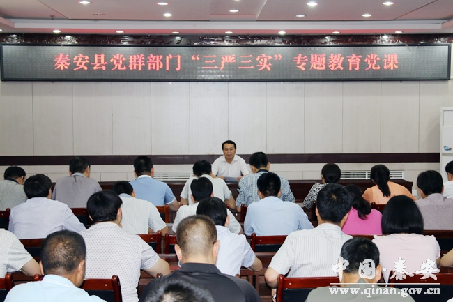 6月19日,秦安县委副书记裴贵军为县党群部门作“三严三实”专题教育党课辅导。县委办、县委党校、总工会、团县委、妇联、党史办等单位党员干部聆听了党课。
