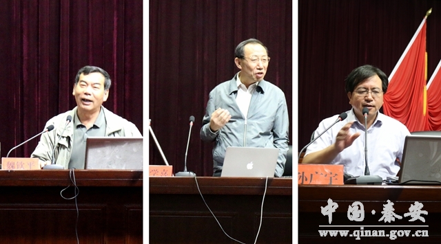 培训会上,秦安县委副书记、县长程江芬致了欢迎词;甘肃省农科院人事处副处长葛强祖介绍了省农科院支持林果产业情况;国家苹果产业技术体系岗位科学家、北京林果研究所所长魏钦平,国家苹果产业技术体系岗位科学家、西北农林科技大学博士生导师霍学喜,国家苹果产业技术体系岗位科学家、西北农林科技大学博士生导师孙广宇三位教授分别作了题为《现代苹果整形修剪与肥水高效利用技术》、《国外苹果产业生产现状及发展趋势》和《苹果主要病虫害综合防控关键技术》讲座。